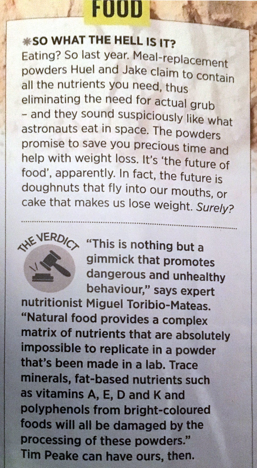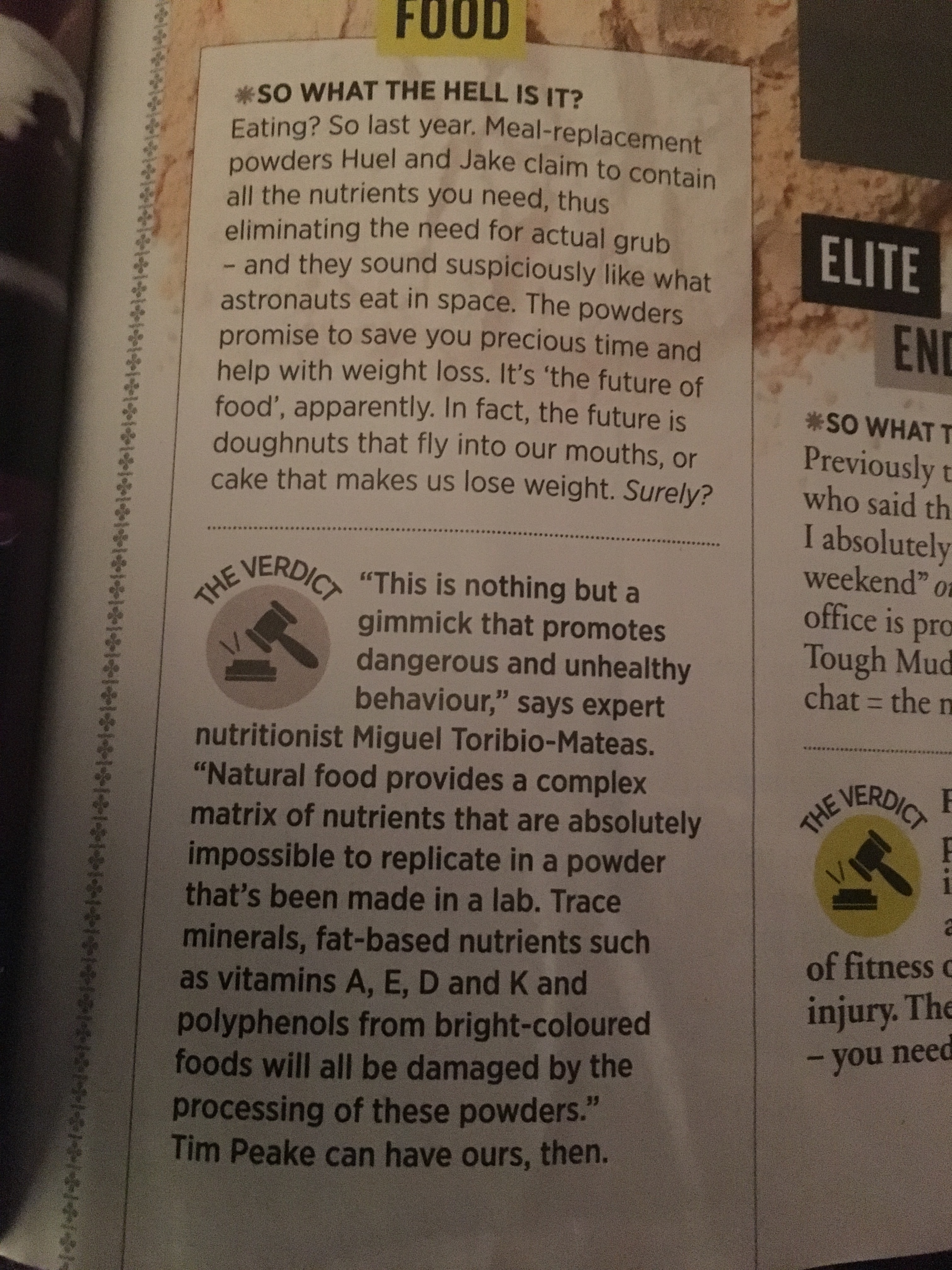 So my other half was reading the Jan 2017 cosmopolitan and I’m afraid it’s slating Huel which is worrying when you are using huel to make sure you’re getting the vitamins that your body needs when on a plant based diet. Any thoughts I’ve hopefully attached a pic of the report.